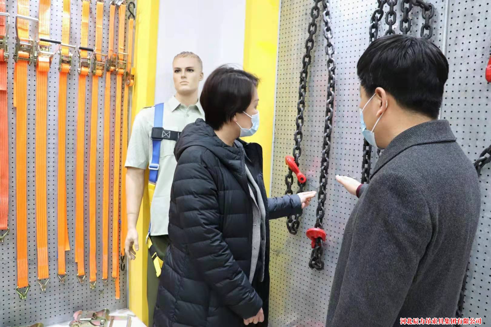 在產(chǎn)品展示廳里,劉丹區(qū)長聽取了蘇總經(jīng)理對吊裝帶、起重鏈條、手拉葫蘆等產(chǎn)品的介紹后,對我公司實力、產(chǎn)品質(zhì)量表示進一步肯定。同時詢問了公司在發(fā)展建設(shè)中存在的問題與困難,并對下一步發(fā)展建設(shè)提出了寶貴建議。